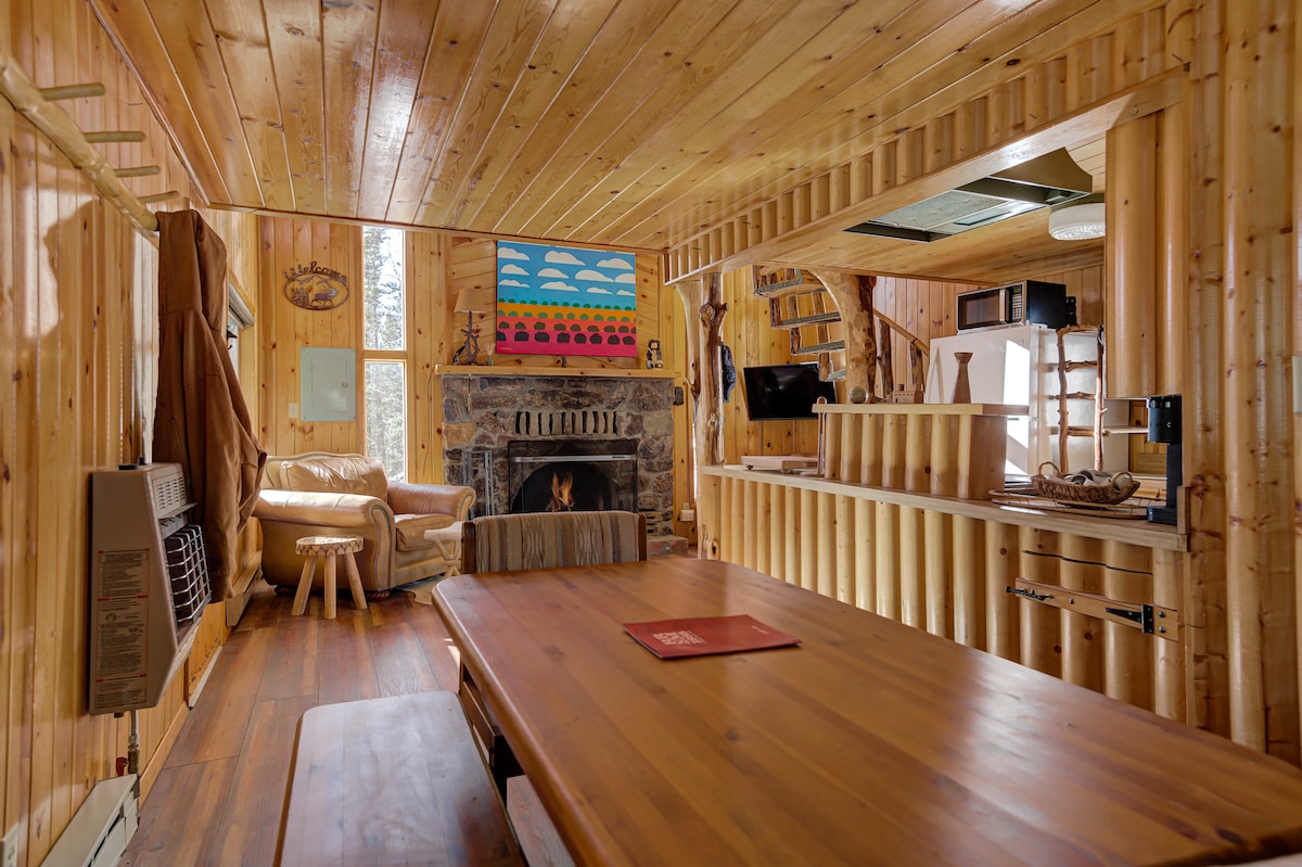 The spaceYou will walk in to sky high ceilings and a massive stone fireplace. We keep plenty of firewood for your stay! Cozy is key! A dining area off to your right allows for meals at home surrounded by the beautiful nature scape. The kitchen is FULLY stocked with everything you’d need to make yourself at home and cook your favorite meals. There is a washer/dryer combo in the half bath downstairs and plenty of laundry supplies. Don’t ever hesitate to ask for a replenish. You’ll walk up the incredible spiral staircase to the bedroom area with views from every angle. A queen size bed with down bedding awaits you on those chilly evenings. The reading nook with leather couch allows for a sitting area while you’re upstairs. The full bath has a wall heater to take the chill off the winter showers! This cabin comes equipped with an electric hot water heater to ensure everyone gets a hot shower! The sleeper downstairs is a full size, and allows for two guests to sleep downstairs. Enjoy the fiber optic internet and stream all of your favorite channels! Please make yourself at HOME. We’re truly honored to have you stay.
